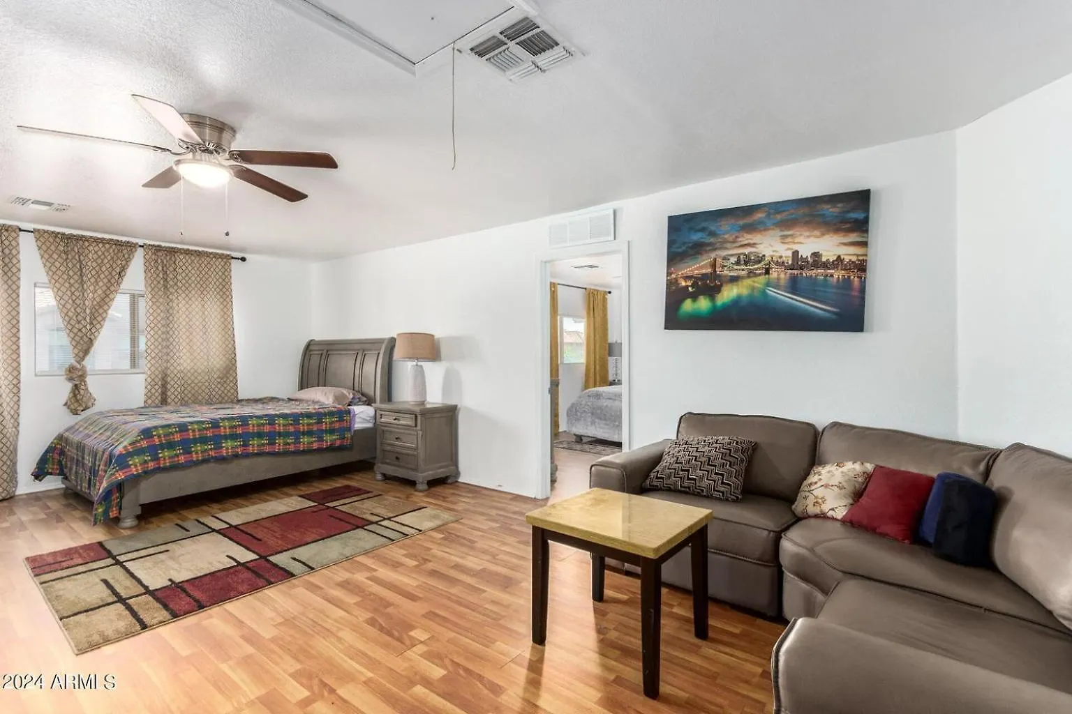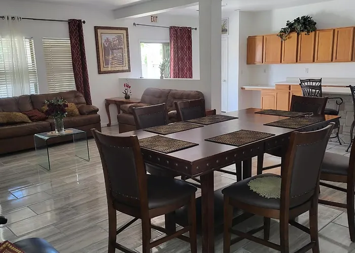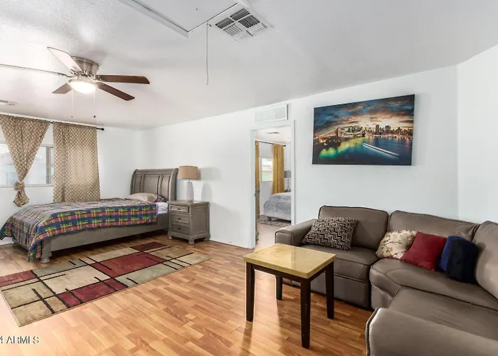 Family Home Vacation Retreat Glendale Az apresenta vistas para o jardim e quartos com cofre, pátio e vestuário. Os hóspedes podem usar bidé, banheira de spa e banheiro separado em todos os banheiros.